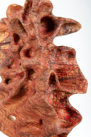 Ceramic birds roost on branches evoking conversation between the artist and his father, while carved logs loom large, mingling with mysterious stone-like sculptures. His “object poems” are masterfully crafted from wood, feathers, paint and other evocative media. A Storyteller’s Doubt continues the artist’s observation of archetypical wild nature. A graceful triptych carved in wood is inspired by the Japanese Zen concept of enso, or circle, a spirit world without beginning or end, and references Moerlein’s research into the Asian tradition of the scholar’s rock.