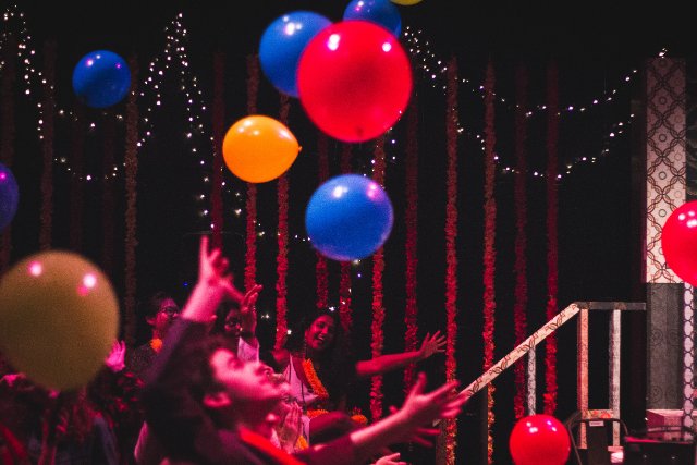 The experience lasts approximately 80 minutes. In addition to the generally fixed script, audience response often adds to the humor. Props and activities add to the energy with colorful scarfs dispensed for attendees to wear and balloons distributed to create a festive feel. The stage is decorated with party lights and streamers. Nagarajan also performs an appealing Indian dance on an audience table with characteristic beautiful finger movement.