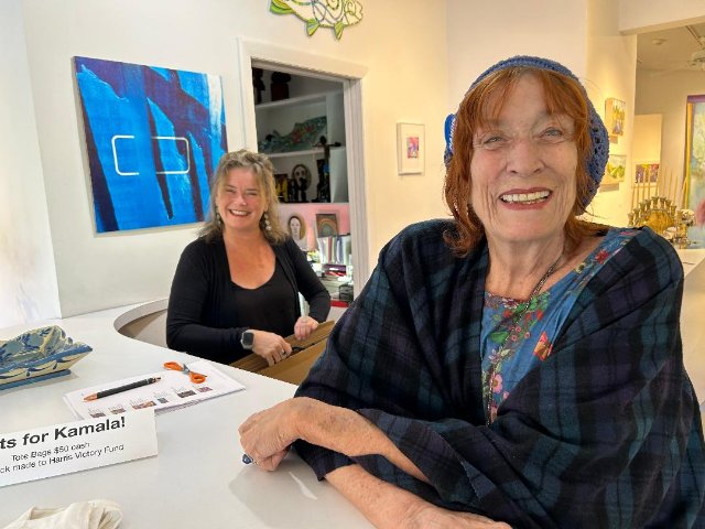 BW He was a jeweler. Why Dad ended up as a jeweler was because he liked color and gems. His partner was the diamond expert; Dad ran the business. It turns out I love color, too. Both Dad, during his lifetime, and I today, respond to the “messages of color” if you will. What I’ve come to learn is that colors reflect various aspects of our spirit energy. Our body energy levels are referred to as chakras: Red anchors you, while blue is the voice. Green, our heart chakra, represents love. That may sound foreign, but I learned about chakras and discovered my dad and I respond a lot alike with parallel intuition. In fact, in this show we’re opening tomorrow, Renewal Through Color, we’re featuring the color blue. Why? Blue is the color of our voice chakra. This show is dedicated to the strength and voice of Kamala (Harris).