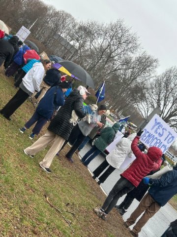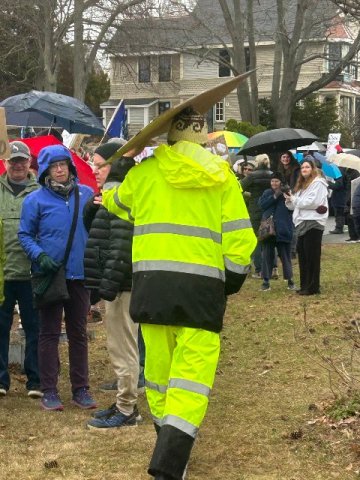 Then, April 5th saw more than 1400 separate protests and millions of people participating in all of 50 States! Washington, D.C. drew more than 100.000 marchers. New York City and Los Angeles had huge demonstrations; and so did London, Paris, and Berlin! Every other big and small City, town, and angry members of communities in the USA protested! We joined a sizable group in the hundreds at the first big traffic circle in Gloucester, Massachusetts. Our shouts and signs received supportive honks from the thousand cars that were driving around the circle every few minutes! The protest lasted for more than two hours. Indeed a huge success!