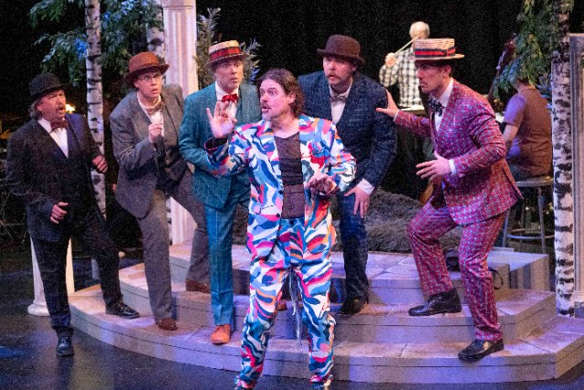 A Midsummer Night’s Dream is full of humorous possibilities that rely on interpretation and fulfillment.  Here we must shed light on multi-talented factotum (borrowing from Figaro) Nicolas Garcia, the general director of the company.  He stage directs this production, extracting wonderfully expressive and nuanced performances from the cast and guiding the complex movement.  He also designed the lively costumes from the pastel jump-suit-like outfits of the soprano-driven fairy chorus to the gaudy plaid suits of the rustic actors.