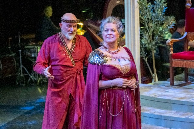 The other male voice of note is a local favorite with a strong North American resumé, and that is bass Kirk Eichelberger as Bottom.  His powerful, mellifluous voice is a house filler under normal circumstances, but in the intimate surroundings of this production, there’s no challenge.  This intimacy, performed on a front-row-level thrust stage and only several rows of seats on each side offers an immediacy that makes for a very involving personal experience.