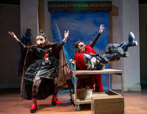 Marin Theatre offers the energized and rowdy It’s True, It’s True, It’s True, a fascinating look at a seemingly rare and riveting event. It is the story of Artemisia Gentileschi, a noted Baroque painter, who as a teenager produced masterworks and would become an esteemed court painter and whose works appear at several major museums. At the age of 15 she was raped by an older male artist, Agostino Tassi in Rome in 1612. Unusually, Artemisia, a female minor in a heavily patriarchal culture, possessed the determination to have Agostino tried, and the play is fact-based on the transcripts of the court proceedings. The play provides some backstory, and otherwise, shares direct testimony from the trial and its outcome.