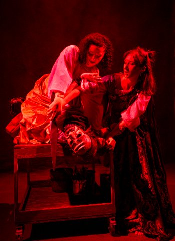 Although the production is small, it is handsome. Pamela Rodriguez-Montero has created hybrid costumery that spans the centuries. Matt Stines’ sound design and Marshall’s lighting enhance the overall feel of Mikiko Uesugi’s simple but suitable scenic design for the intimate Lieberman Theatre. Director Rebecca Wear integrates all of the pieces and drives the pace to create a gripping sense of urgency.