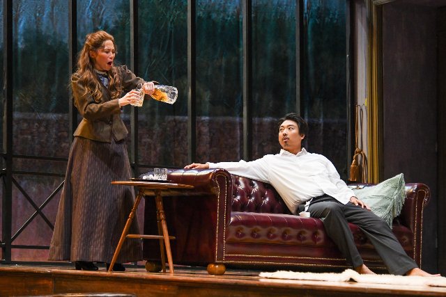 Her counterpart, WooYoung Yoon as Alfredo exhibits a strong, clarion tenor voice that rings clear to the very end. It did seem that he needed a warmup at opening. Perhaps it’s unfair to have a highlight such as the lively brindisi “Libiamo ne’ lieti calici” (“Let's drink from the joyful cups”) almost out of the gate before the singer hits stride. In a couple of places in that toasting song, Yoon seemed to get caught between major and minor intervals, but beyond that, he was on pitch and powerful.