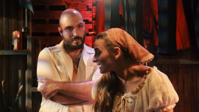 Rest assured, though, that you are not imagining Calia Katz’s nuanced and sensitive portrayal of Mae. This Miami-grown theater artist often leans physically into the male characters, radiating believable passion and determination. Certainly, as Katz portrays her, you sense that this young woman possesses a hunger not just for food, but for knowledge, connection, meaning. A stubborn vitality defines Katz’s Mae — hers is a spirit that seems hard to break. And by physically pressing toward the men in her life, Katz creates a Mae who is trying, with everything she has, to be seen and understood.