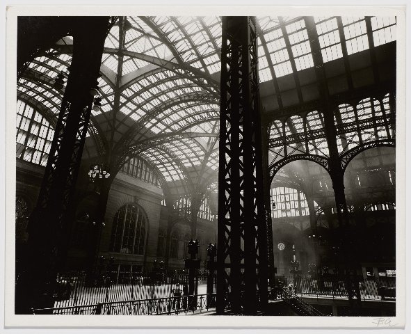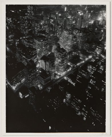 In 1929, Abbott left Paris for New York City. The urban landscape of New York City was transforming rapidly, and Abbott wanted to capture it in that ephemeral state of change and potential, juxtaposing the old with the new. She largely left portrait photography behind her, focusing her energies on the city. Abbott’s photographs of New York City stand independently as individual works, but each, in fact, forms part of a much larger whole—a portrait of the city as a single complex entity. In 1940, when asked to choose a single favorite photograph, Abbott responded: “Suppose we took a thousand negatives and made a gigantic montage; a myriad-faceted picture combining the elegances, the squalor, the curiosities, the monuments, the sad faces, the triumphant faces, the power, the irony, the strength, the decay, the past, the present, the future of a city—that would be my favorite picture.”