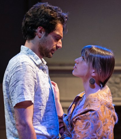 Acting is solid with particular kudos going to Amarotico, who deserves recognition even before beginning his main role. At (figurative) curtain up, he masterfully portrays a highly effusive and interesting professor who gives a lecture on the Bronze Era and the locale of the play’s action. His range is extended as he adroitly expresses the many faces of the opaque Nikolis.