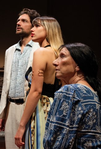 Into their lives comes an intruder, a young man, Nikolis, performed by a seemingly sincere but crafty Andre Amarotico. His story is that he is from a wealthy family in Mykonos; was returning from war in Ilios; and his boat was sunk by a sea monster of some sort. He seeks sustenance, shelter, and a way to get back home.