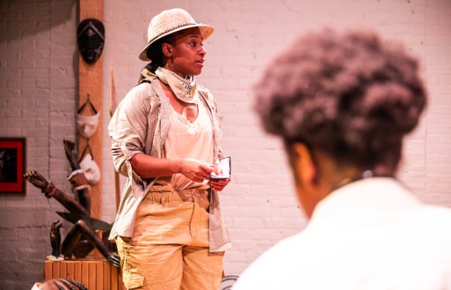 With regard to the earlier mentioned fault, acting by each of the eight actors ranges from good to excellent. However, one issue that will cause consternation to some audience members concerns a well-intended but confusing casting approach. All actors appear to be black women, though the genders and races of some actors may vary from that assumption. Yet they portray black and white, man and woman. To make things more confusing, three of the actors play two roles each. Many audience members will be at sea until they unearth the identifications, which are not clear from the outset.