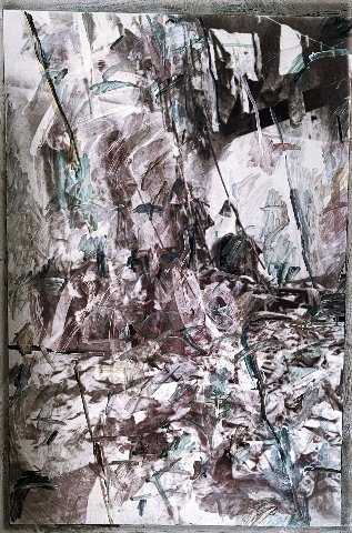 Greg: I still have one of the paintings from your One Day in May series of paintings hanging in my home. The painted rags suspended haphazardly from the thick, rough ropes stretched from wall to wall across your studio.