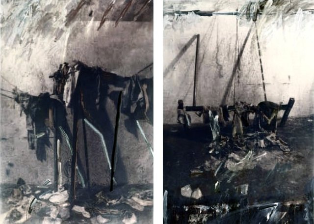 Rafael: After asking around, I discovered the world of rag pickers, chiffoniers, on the outskirts of Paris. It was a marginal world, run by hard-working and tough-looking men and women. They collected the rags from the trash cans and textile dumps from all over Paris. They sold the rags to factories, restaurants, meat packers, house painters, paper mills, and other professions. The chiffoniers worked out of immense hangars. The people asked no questions. I told them I was building a set for a play in a theatre. A real theatre, they asked. Yes. And they said sure, take your pick. In these gigantic spaces there were two- or three-meter-high mounds of cloth, torn and cut. The piles were of different colors and patterns. Women were sitting at tables, cutting off buttons and zippers, and throwing them in tin boxes. So, I dug around these piles, and like a child feasting on goodies, I sunk my hand into these rag mountains and took armfuls of white rags, so I could splash them with paint. I jammed all the rags into my car, front and back seats. The VW looked like an overstuffed pillow.