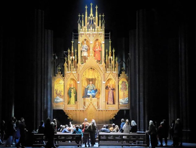 Still, Rheingold gives us more than the movement of singers. The turntable set evolves fluidly: from towering columns to a cluttered fire escape above junk, and finally to a cathedral nave, whereWotan and Fricka—played with a mix of grace and cunning by Ekaterina Gubanova—prepare to launch the Ring’s final reckoning.