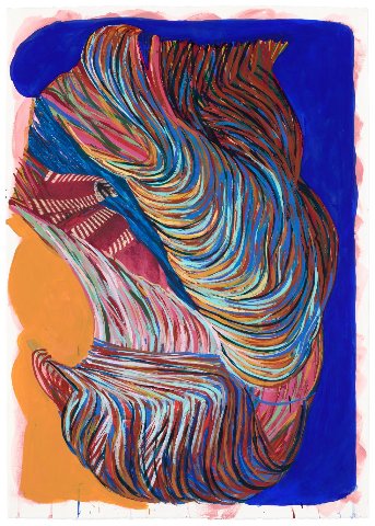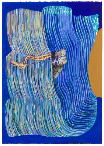 I work predominantly in acrylic and Flashe paint on paper, sometimes mixing sand into the paint - collected from the landscape - adding texture and grounding the work in physical place. In certain instances, I collage photographic fragments - images of beadwork and fabric from South Africa and the United States. They come from my collection of inherited and domestic textiles that are part of my everyday life. I cut the images in ways that abstract them, removing context and disrupting the original meaning. Some fragments integrate quietly into their new environment, barely distinguishable from the painted surface. Others remain separate, creating tension or surprise and contrasting against their new surroundings. This sense of dislocation - of parts removed from one place and absorbed into another - opens new relationships, a new way of coexisting.