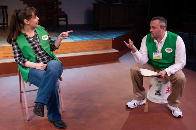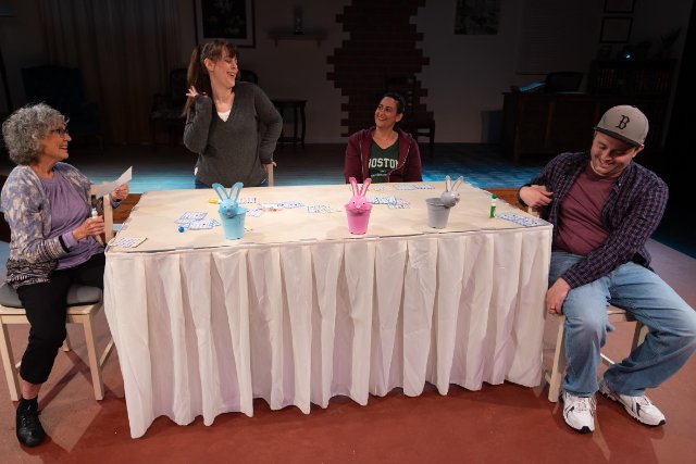 With Lindsay-Abaire’s depictions (scenic design by Tom Curtin) and the adroit direction of Russell Kaltschmidt, the situations and characters in Good People resonate with truth. Though most get by within acceptable social limits, gang fights, petty larceny, jail time, homelessness, and early death abound as topics of discussion in the working-class girls’ talk. The stultifying immobility of the economically marginalized is numbing. The thick Boston brogue (kudos to Dialect Coach Sarah Elizabeth Williams), which Mike has overcome to climb the social ladder, acts as a marker. So does buying from the Dollar Store and Goodwill. And relief from the humdrum is playing Bingo at the church once a week.
