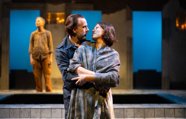 Waiting for the play to begin I was astounded by the transformation of the intimate Unicorn Theatre in Stockbridge. A quite literal, tiled Roman pool is featured in the magnificently brilliant and inventive set designed by Jason Simms. There are votive candles in niches of the back wall framing an entrance.