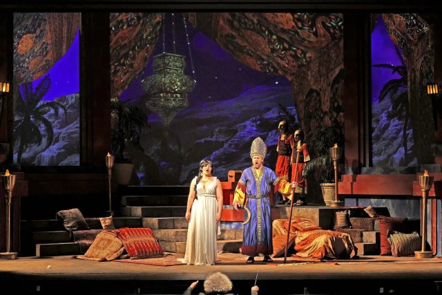 With the French market of the period in mind, the composer also inserted ballet, most significantly the Bacchanale, which contains the other most recognizable music from the opera. Unlike the remainder of the score, the exotic, heavily punctuated dance music is very Middle-Eastern. The writhing dance is well choreographed and performed. However, while the orgiastic theme and dance fits with the storyline, it comes at a strange time in the opera, just when the audience is looking for denouement and closure.