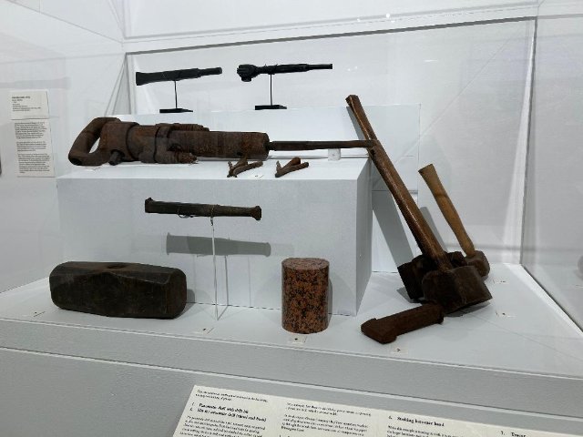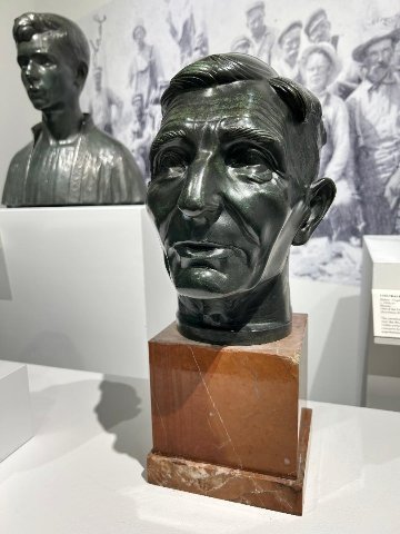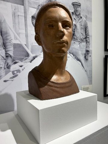 That is conveyed in a mix of bronze busts by such eminent sculptors as Walker Hancock and George Demetrios. Hancock depicts young boys while Demetrios had an eye for his ethnic neighbors who worked the quarries. There were representational landscapes and portraits as well as prints. There are intervals of engaging with photo murals of the ruddy workers and the now rusty tools of their abandoned trade. In vitrines we see such vintage items as union badges and account books.
