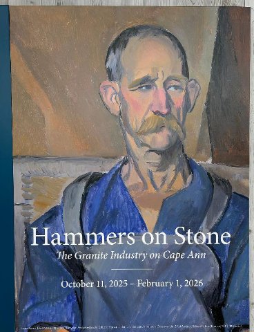 The current exhibition Hammers on Stone: The Granite Industry & Cape Ann on view through February 1 is a gem. Given the nature of the show it may be described as a diamond in the rough. It has been superbly curated and installed by Martha Oaks and Leon Doucette.