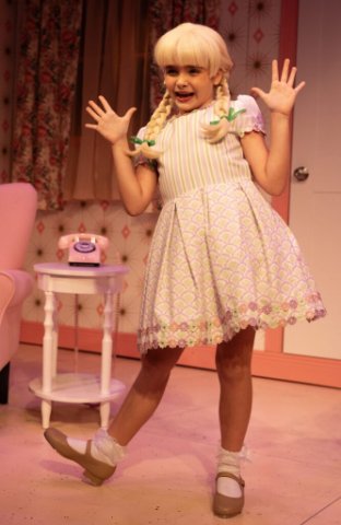 Rogow also creates striking stage pictures such as Tanner’s Tina raising her arm in triumph while standing on a table. While on the table, Tanner’s Tina tap dances seemingly effortlessly. The young performer, with shining dark eyes and impressive stage presence, is a true triple threat. Tanner doesn’t settle for acting merely cute but imbues Tina with convincing confidence, determination, and fearlessness. When mom asks Tina whether she did something dastardly or is just acting, she emits an evil laugh. Then, suddenly, she turns innocent, saying, “I wanted the part” (as in the school musical version of Pippi Longstocking). It's all deft comic timing.