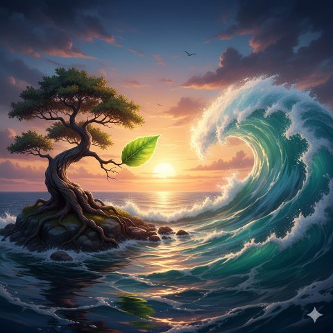 Consider the leaf. It does not exist separately from the tree. It is the tree’s annual, moment-to-moment action of photosynthesis, growth, and release. Consider the wave. It is not an object that floats on the ocean; it is the momentary rising and falling, the motion of the ocean itself. The ocean is not lessened by the wave’s peak, nor is it harmed by its dissipation. The wave is simply the ocean doing "wave."