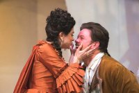 By: - Jan 22nd, 2017“Les Liaisons Dangereuses” at San Diego Rep Theatre’s Lyceum Space stage, is the third production from the young New Fortune Theatre Company co-founded by Richard Baird and Amanda Schaar. The play centers around two ex-lovers: The Le Vicomte de Valmont (Richard Baird) and La Marquise de Merteuil (Jessica John Gercke) who scheme to ruin the reputation of an innocent young aristocrat Cecile de Volanges (Gentry Roth).