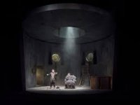 By: - Nov 03rd, 2025The Druid theater is mounting Samuel Beckett’s Endgame at the Irish Arts Center in New York. The set is striking. It is curved like the inside of the two garbage cans sitting on the stage, covered by cloth at the start. Inside tthe actual cans are two stumps–a happily married couple, Negg and Nell, played here by Bosco Hogan and Marie Mullen (one of the founders of Druid).