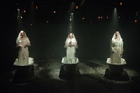 By: - May 13th, 2015Signal's production is the Chicago premiere of a script by playwrights Beth Graham, Charlie Tomlinson and Daniela Vlaskalic, Canadian theater artists, whose play was first performed in 2008 in Alberta. Their script is poetic prose and requires the actors to speak in lists, finish each others' sentences and read their own obituaries from the wet newspapers they bring out of their tubs.